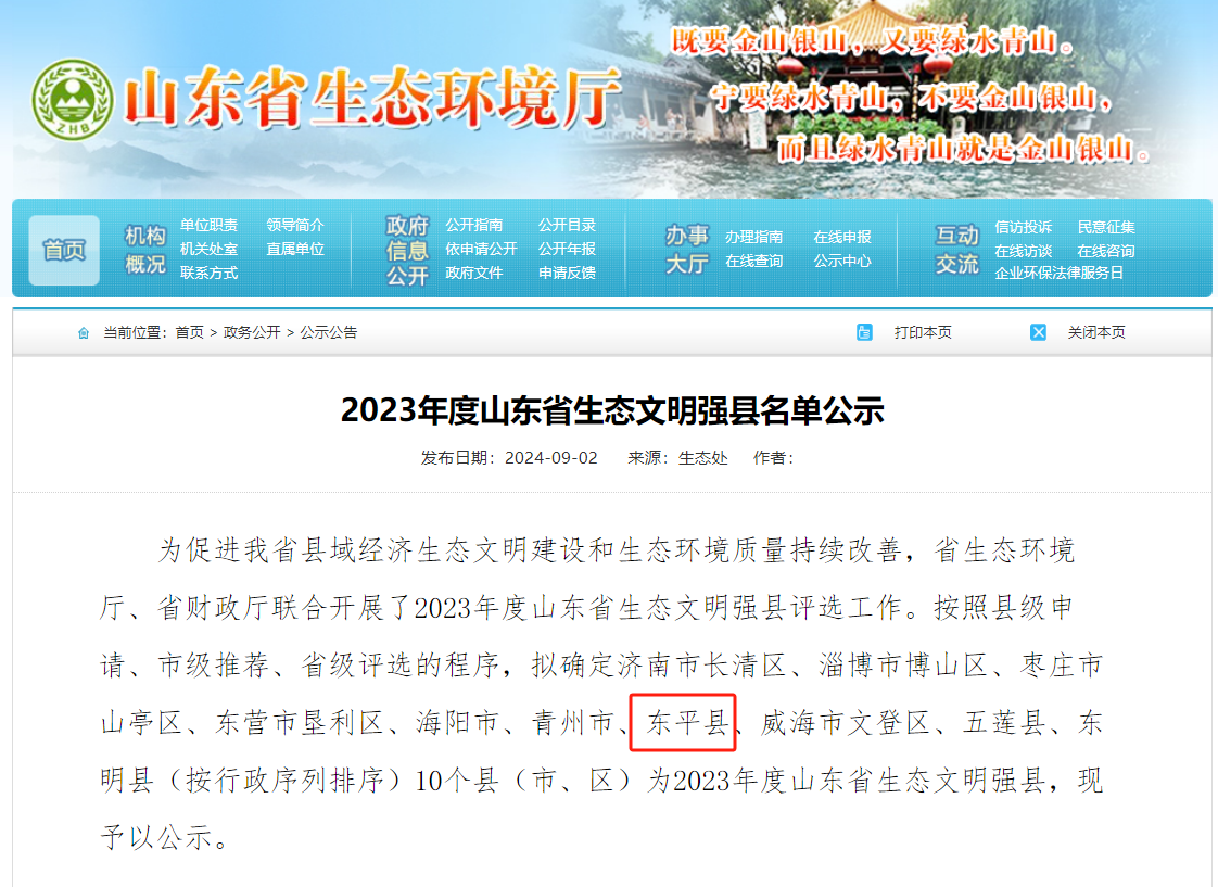 近日,由北京中環(huán)瑞德環(huán)境工程技術(shù)有限公司(以下簡稱中環(huán)瑞德)承接的東平縣人民政府2023年度山東省生態(tài)文明強縣的申報項目順利通過山東省生態(tài)環(huán)境廳和山東省財務(wù)廳篩選評估,成功入選2023年度山東省生態(tài)文明強縣,實現(xiàn)泰安市在“生態(tài)文明強縣”稱號上零的突破,并獲得1000萬元的專項資金。